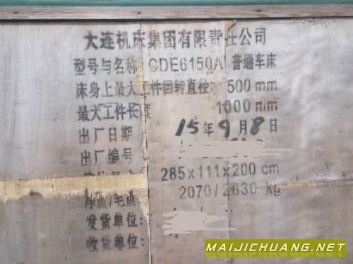 出售全新未拆封大连普通车床CDE6150A 15年9月的,规格285X111X200cm,回转直径500m,最大长度1000mm。
